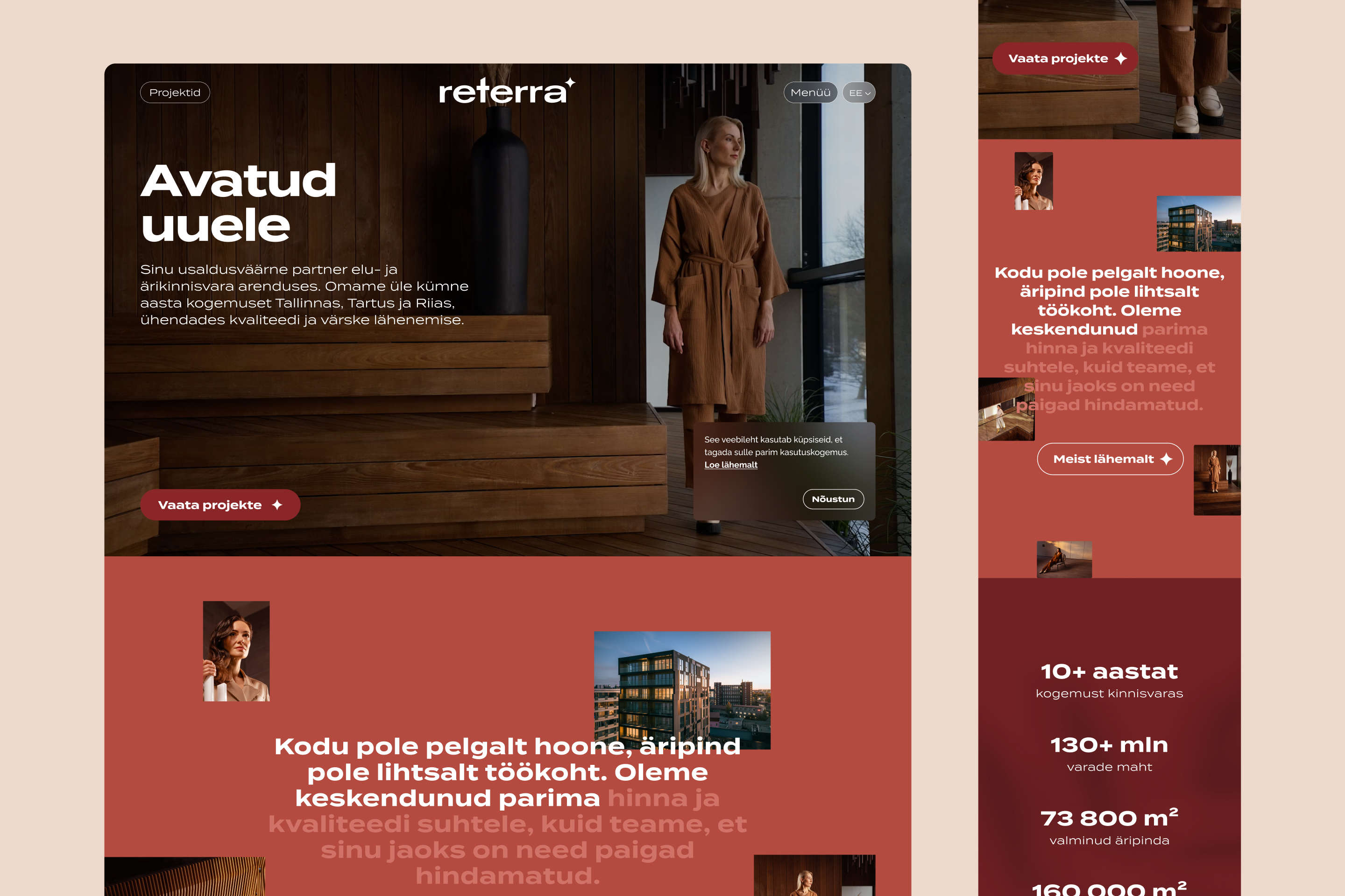 We created a website for real estate developer Reterra that supports their ambitions and feels modern and engaging. The final solution brings the website to life through animations and engaging design techniques. We ensured that information about Reterra is presented beautifully and clearly—regardless of whether it is a simple figure or a visually captivating development project.